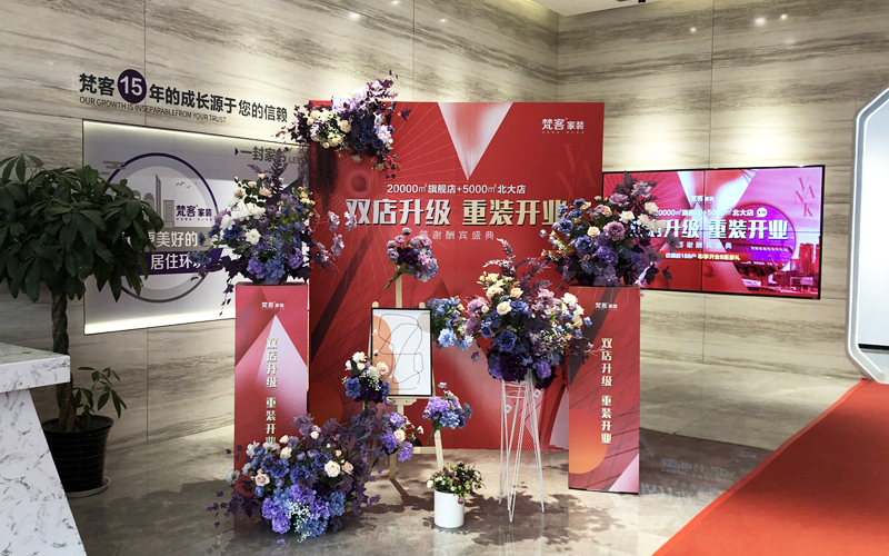 合作时间:2022年-至今 2022年1月,我司与梵客家装正式建立合作关系,为展会活动和场景搭建提供物料。
